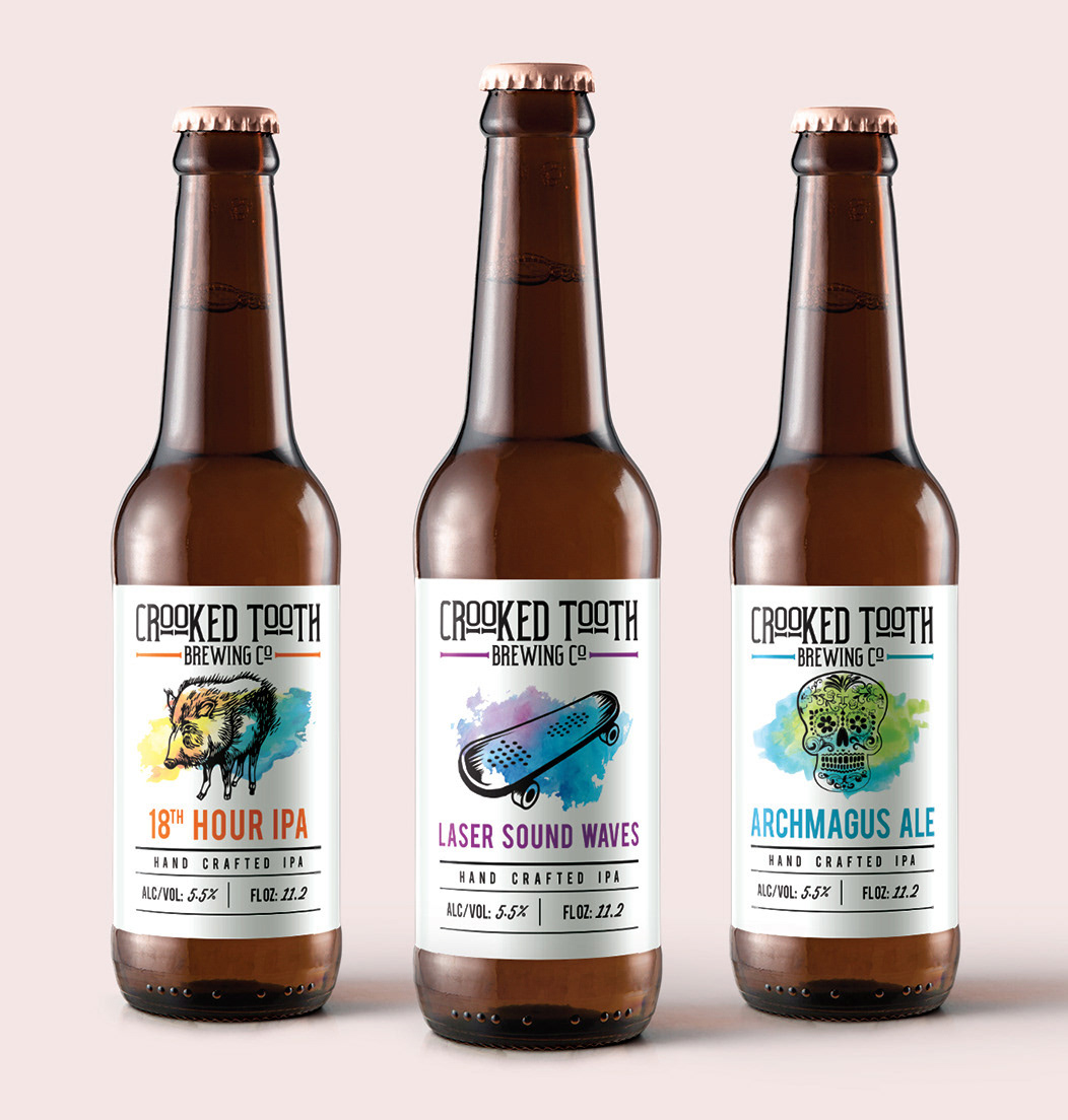 Crooked Tooth Brewing Co., a beloved local brewery in Tucson, AZ, was the focus of this conceptual rebranding project. Designed to captivate the 21 to 34-year-old demographic, the rebrand includes a fresh logo, dynamic beer label designs, and engaging event mailers.